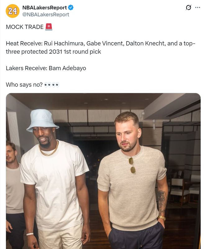 湖人媒体NBA Lakers Report模拟了一套交易阿德巴约的方案,这个方案是4换1,湖人送出八寸垒、克内克特、文森特、2031年首轮签(潜在的前三顺位)。这个方案说实话非常寒酸,如果黄蜂、马刺要抢热巴,湖人根本对应不上筹码。