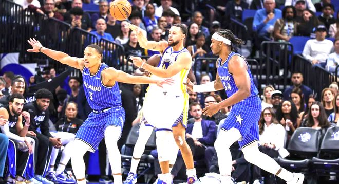 比赛简单回顾:这场对决开场便进入白热化胶着状态,两队攻防节奏紧凑,比分交替攀升始终难分伯仲。魔术节末一度掀起攻势试图拉开分差,但勇士迅速给出反击稳住局势,成功将比分紧紧咬住。次节再战,魔术凭借犀利的冲筐造杀伤攻势持续施压,分差一度拉开至两位数。关键时刻库里挺身而出,一记精准空位三分命中,成功超越文斯・卡特,生涯总得分正式跻身历史第22位。手感滚烫的他随后连中三分带队追击,半场战罢,勇士将分差缩小至7分。