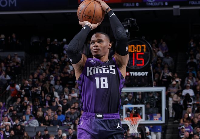 北京时间11月27日,NBA常规赛(NBA杯)继续进行,国王主场迎战太阳。赛季前美媒预测这两支球队都是坦克大队,但赛季开打一个月,处境天差地别。太阳此前战绩11胜7负,排名西部第六;国王此前战绩只有5胜13负,排名西部第十二。半个多月前,美媒就确认国王将三巨头德罗赞+拉文+小萨博尼斯摆上货架,球队也经历了一波连败。不过过去两场比赛,国王分别逆转战胜掘金+森林狼,威少功不可没。国王当下的处境其实很不妙,小萨因膝盖伤势长时间休战,拉文从数据刷子下滑到小透明,德罗赞状态起伏很大。