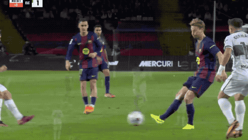 半场结束,巴萨2-1暂时领先。两队射门12-1,巴萨完全碾压埃尔切。第55分钟,埃尔切卷土重来,席尔瓦禁区前连续晃动后将球传到左路,拉法·米尔兜射远角,皮球击中横梁。