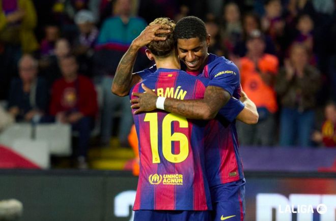 第61分钟,巴萨的长传落点精准,费尔明的传中准确找到拉什福德,拉什福德一脚爆射,巴萨再次取得两球领先。