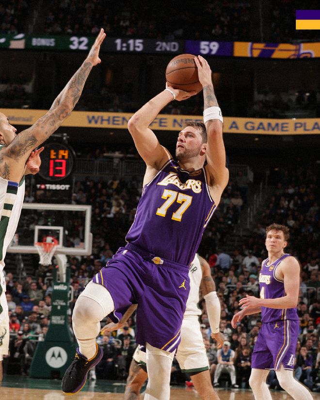 勒布朗·詹姆斯缺阵也无妨,湖人卢卡·东契奇对阵雄鹿展现统治力